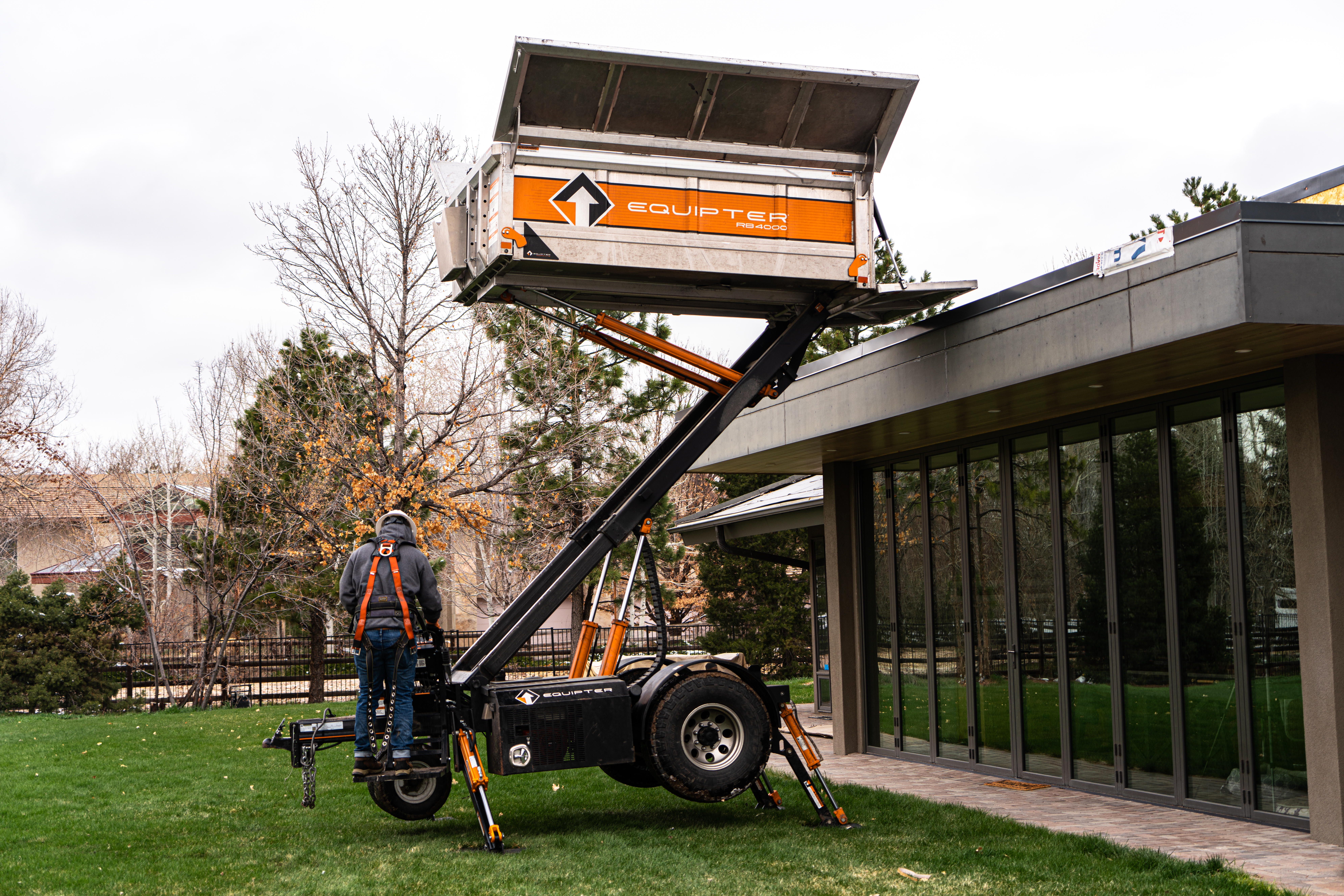 Material Delivery: Don't carry heavy lumber, cabinets, or drywall up ladders or stairs. Load the Equipter on the ground, drive it to the access point, and lift the materials up to your crew.
