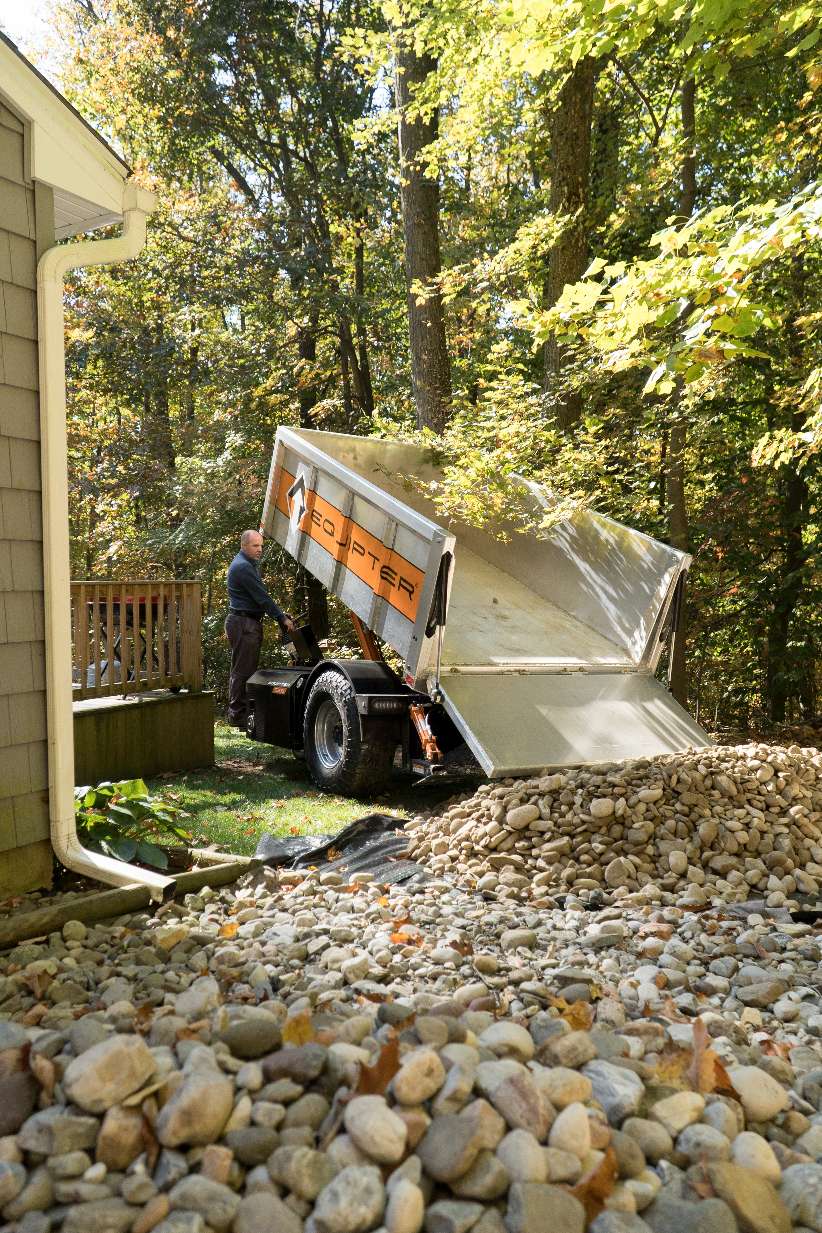 Dump Anywhere: The hydraulic dump feature allows you to deposit soil or stone exactly where you need it, rather than dumping it in a pile on the driveway and wheelbarrowing it the rest of the way.